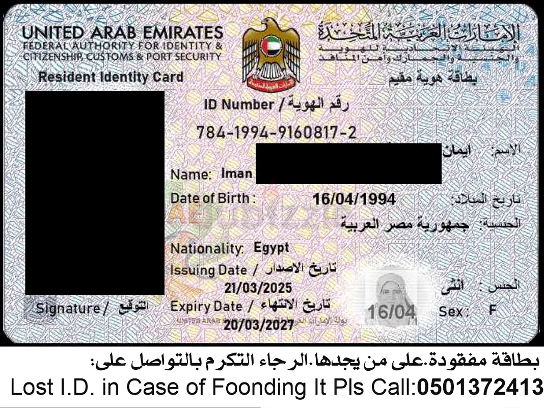 طاقة هوية مفقودة. على من يجدها التكرم بالاتصال على: .