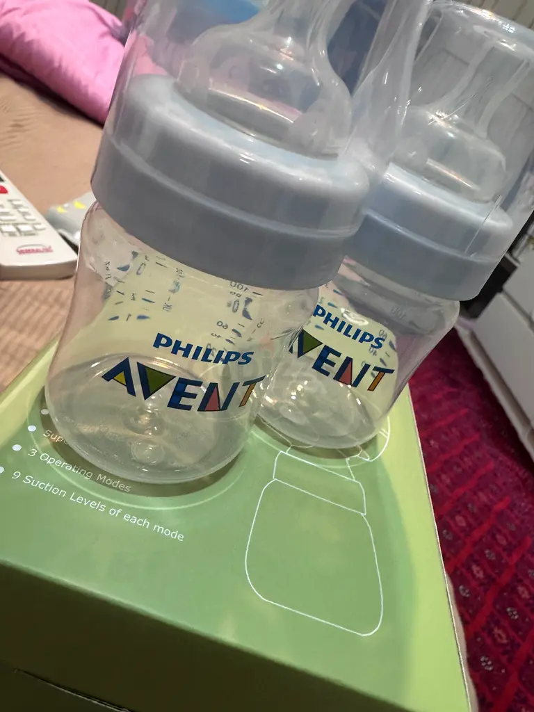 I'm selling a brand new set of Philips Avent baby bottles. This set has been used only once and is in flawless condition, making it perfect for parents looking for high-quality feeding solutions. These bottles are designed for easy handling and are made from safe materials, ensuring a comfortable experience for both the parent and the baby.