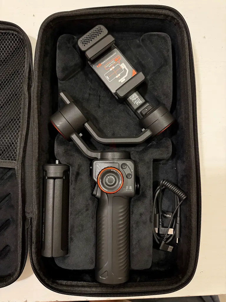I'm selling my Hohem iSteady M6 Stabilizer Gimbal which is perfect for mobile video recording, compatible with both Android and iPhone devices and with AI tracking capabilities. This gimbal has been used only once, so it's in flawless condition. It delivers professional-level stabilization, making it ideal for capturing smooth and dynamic videos. Along with the gimbal, it also comes with a protective case and all original accessories. Plus, it still has a warranty for added peace of mind.