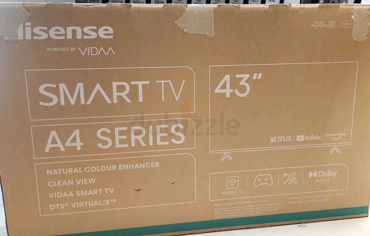 I'm selling my Hisense 43-inch A4 Series Smart TV. I bought it about 1–2 years ago and it's been used normally; it's in good working condition. It's the VIDAA smart platform with built-in apps like Netflix and YouTube. The set was wall mounted during use and there is no warranty remaining.