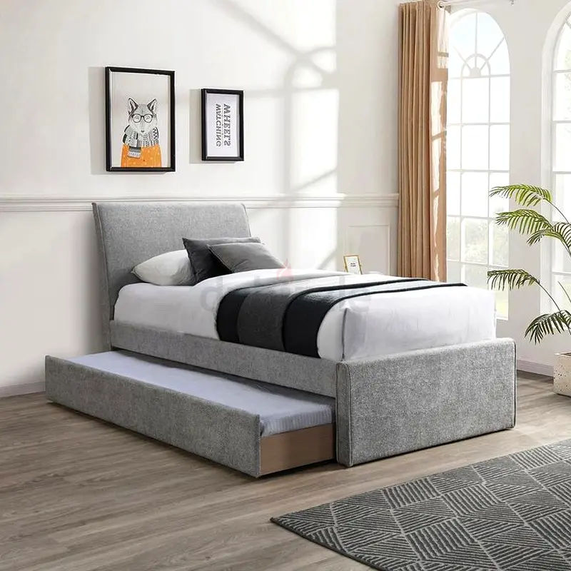 Transform your bedroom with this stunning Grey Single Bed Frame with Trundle! Crafted from high-quality materials, this brand new bed is perfect for those looking to elevate their sleeping space. It features a sleek and stylish design that complements any decor, while the trundle option provides extra sleeping space for guests or kids. With its flawless condition and never-used status, you can rest easy knowing you're investing in a top-notch piece of furniture. Ideal for compact spaces or children’s rooms, this bed frame is a perfect blend of functionality and style. Don't miss out on the opportunity to own this custom furniture piece, available now in Dubai!