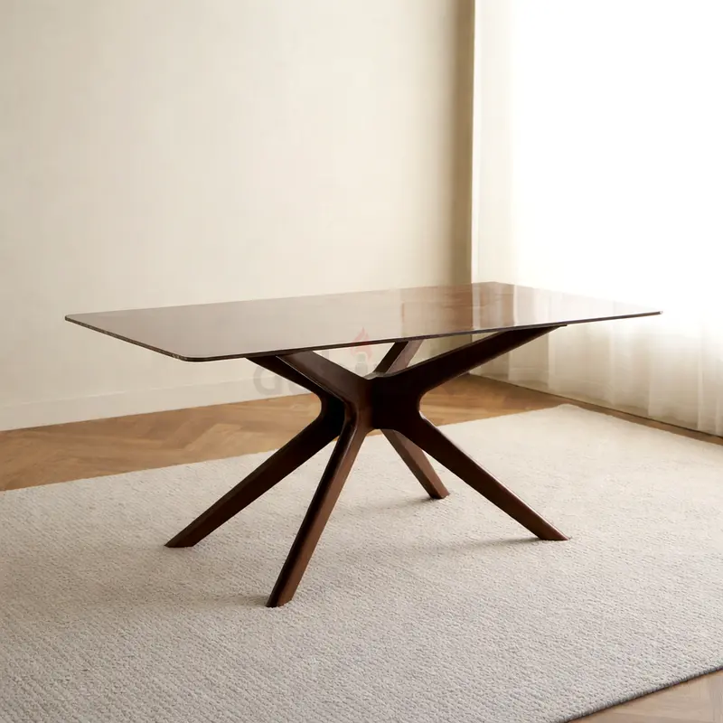 Experience the perfect blend of style and functionality with this elegant table. The ceramic tabletop is easy to maintain, while the sculptural wooden star base provides strong support and a refined modern look. Ideal for dining, work, or living spaces.
