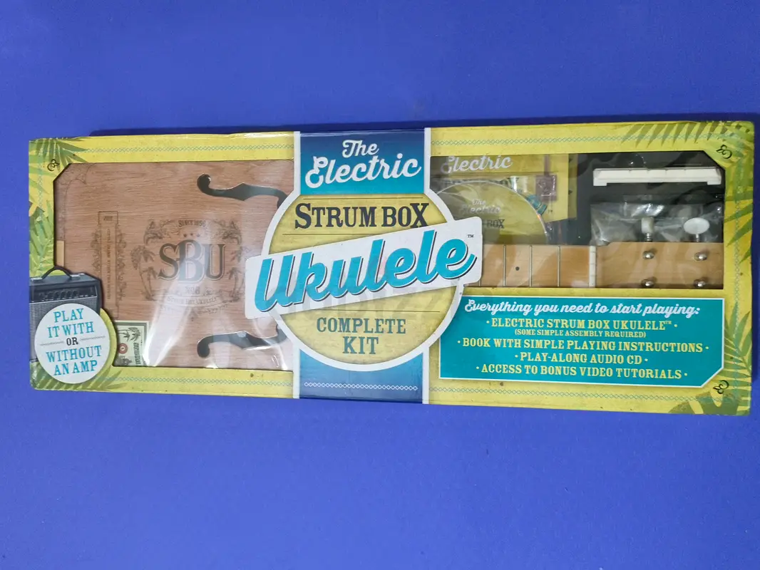 I’m selling a brand new, never-used Electric Strum Box Ukulele complete kit. It’s still in its original sealed box and in flawless condition. The kit includes the electric strum box ukulele, a book with simple playing instructions, a play-along audio CD, and access to bonus video tutorials. It can be played acoustically or plugged into an amp for electric sound. Perfect for beginners or as a gift.